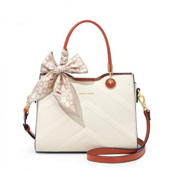 Elegant Women’s Leather Tote Bag with Silk Scarf