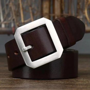 3.8CM Genuine Thick Leather Belt for Men with Stainless Steel Pin Buckle