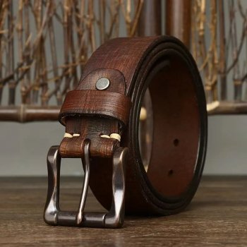3.8cm Wide Men’s Genuine Leather Belt with Copper Smooth Buckle