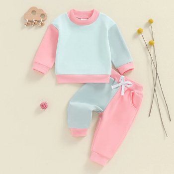 Autumn Baby Girl Boy 2-Piece Outfit – Contrast Sweatshirt & Pants Set