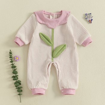 Baby Girl Embroidered Floral Romper with Doll Collar – Long Sleeve Jumpsuit