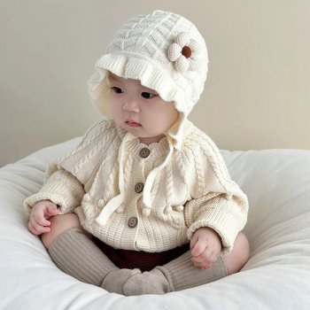 Adorable Baby Knitted Romper and Beanie Set – Long Sleeve, Button Down Jumpsuit