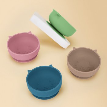 Cartoon Cat Silicone Suction Baby Bowl for Self-Feeding Toddlers