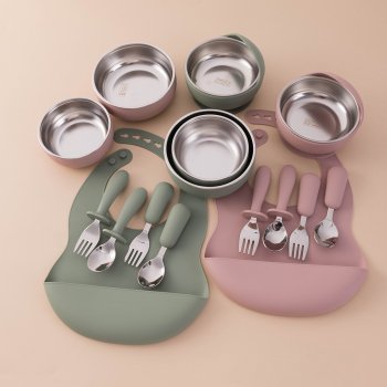 8PCS Stainless Steel & Silicone Baby Feeding Set with Detachable Bowl and Bib