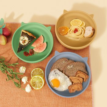 Silicone Suction Baby Plate in Cute Cat Shape for Self-Feeding Toddlers