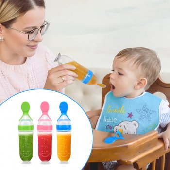 2pcs Silicone Baby Feeding Bottles with Pacifier & Training Spoon for Newborns