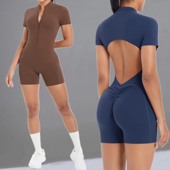 Backless Short Sleeve Yoga Jumpsuit for Women