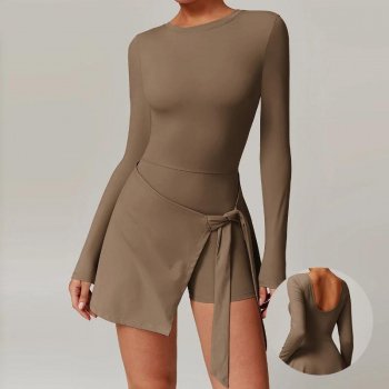 Quick-Dry Long Sleeve Tennis Dress with Side Slit Slim Fit Sports Outfit