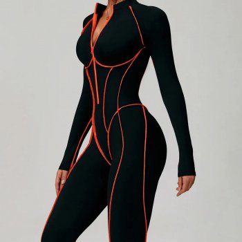 Women’s Yoga Bodysuit Breathable Workout Set with Zipper Leggings