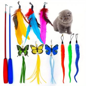 Interactive Feather Cat Toys 11-Pack with Bell