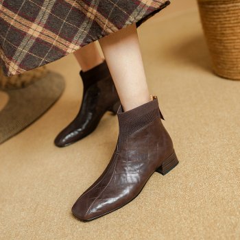 Autumn Genuine Leather Chelsea Boots for Women Square Toe Mid Heel